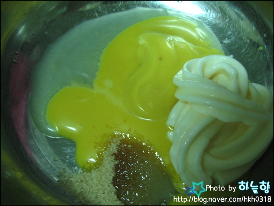 머스터드, 마요네즈, 레몬즙, 설탕을 골고루 섞어서 소스를 만듭니다.