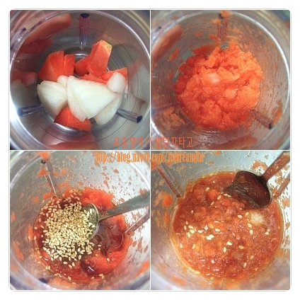 양파와 당근을 적당한 크기로 썰고 믹서기에 넣어서 곱게 갈아줍니다