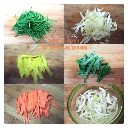 부추, 배추, 노랑파프리카, 깻잎, 당근, 양파는 손질후 채썰어준다