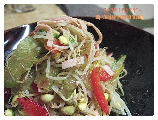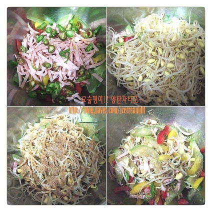 콩나물, 콩나물, 슬라이스햄, 오이, 홍.노랑 파프리카, 풋고추