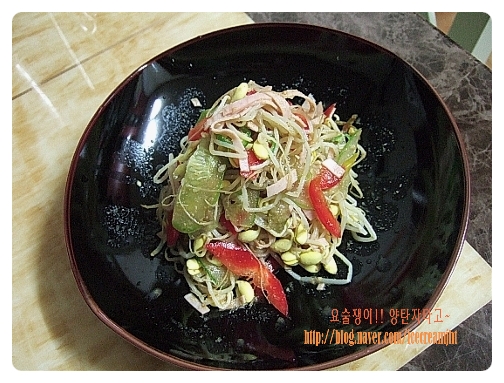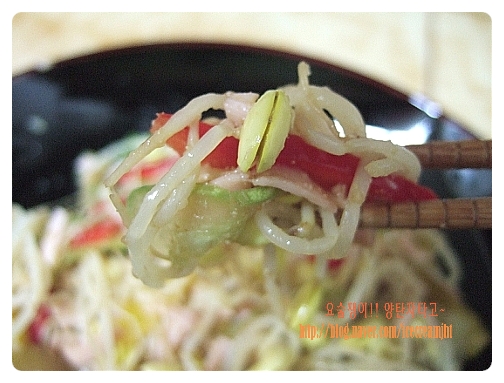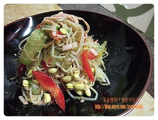볼에 모든 재료를 넣고 드레싱을 부은후 살살 버무려준다