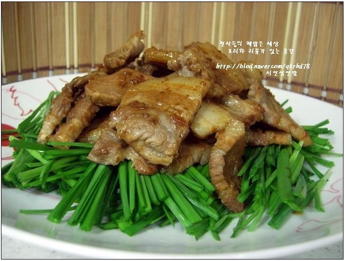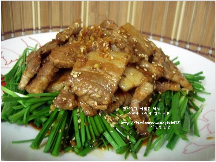 부추와 삼겹살을 함께 올려두시면 삼겹살샐러드의 맛이 일품이겠지요^^