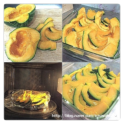 단호박은 껍질을 깨끗이 씻어 반 가르고 씨를 파낸 다음