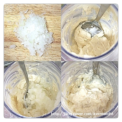 양파는 다져주고 믹서기에 크림치즈와 올리고당, 요리초를 넣고 잘 섞어준다