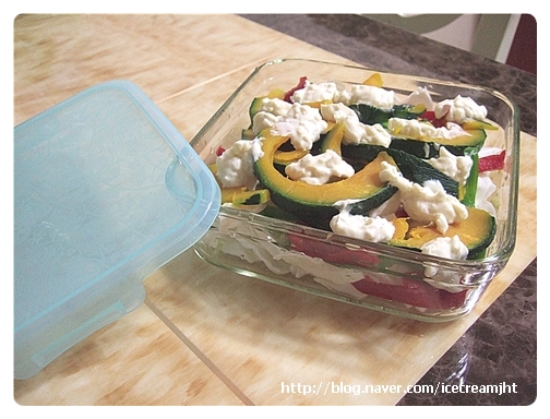 양배추, 파프리카, 단호박 순으로 담는다