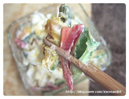 드레싱 (크림치즈 2큰술, 다진양파 2큰술, 꿀 1큰술, 요리초 1큰술, 소금, 후춧가루)