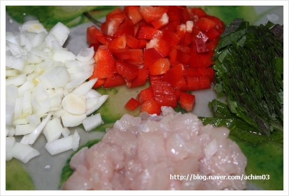 오늘은 파프리카 입택 기념으로 닭가슴살 넣고 후다닥 밥 볶았습니다.