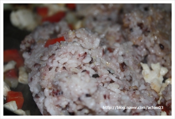 가능한한 빠르게 밥이 뭉게지지 않도록 볶습니다.