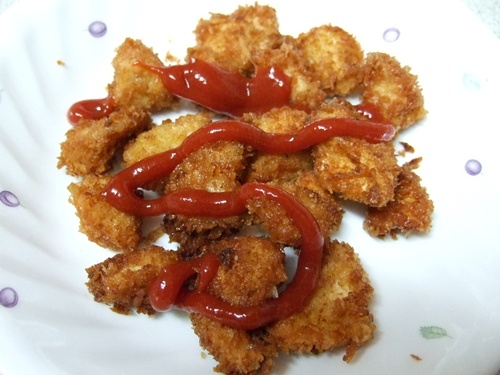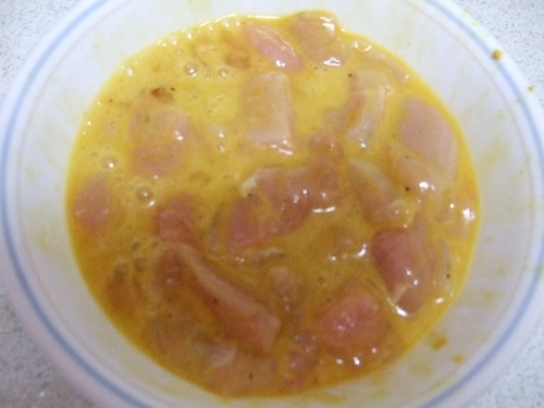 닭안심 , 빵가루 한컵, 계란 1개, 밀가루 3큰술, 카레가루 1큰술, 우유, 허브소금