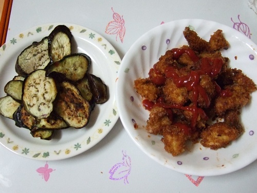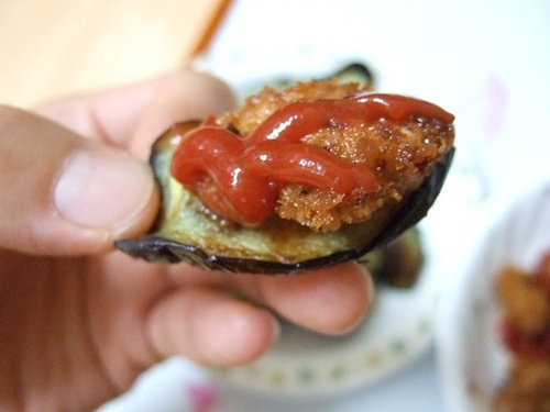 전 튀김류가 느끼해서~ 구운 가지와 함께.. 가지에 올려 먹었어요.