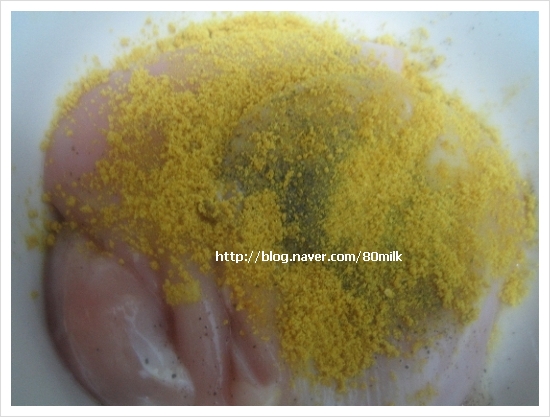 먼저 닭가슴살을 우유에 30분 재워두신다음에