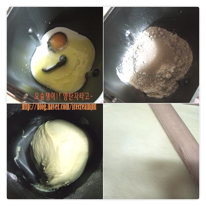 반죽재료를 제빵기에 넣어 반죽을 해줍니다