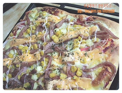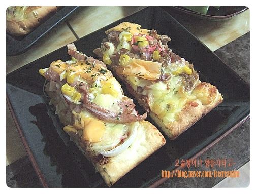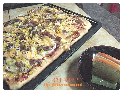(이 반죽은 브로트쿠헨을 만들때 하는 반죽으로 이렇게 피자도우로 하면 좀 두꺼워도 부드럽고 푹신하여 정말 맛있어요^^)