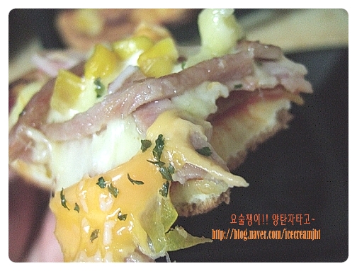체다치즈를 길게 썰어서 올려주고, 캔옥수수와 말린 파슬리를 올려준빈다