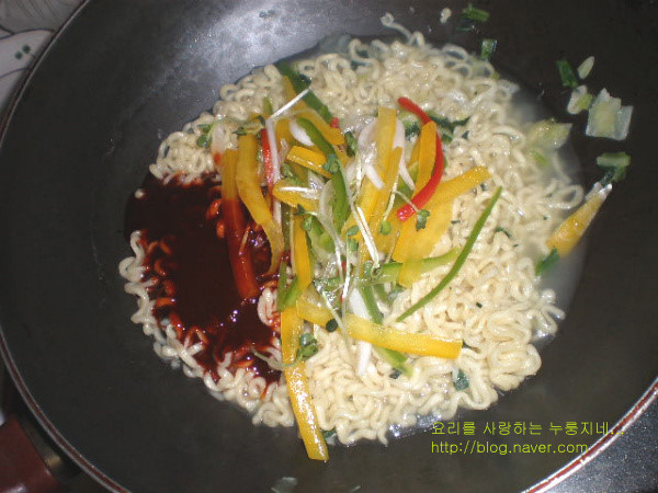 면은 3~4분정도 삶은뒤 국물을 조금 남긴뒤 따라 버립니다.
