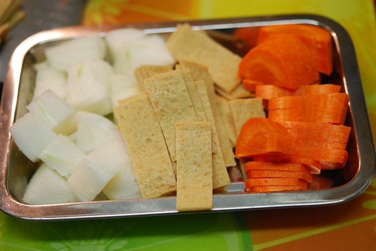 1. 양파와 당근. 어묵은 적당 크기로 썰어주세요. 대파는 어슷썰어요