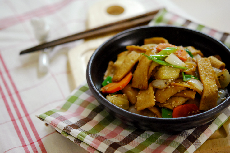 - 어묵은 뜨거운 물을 부어 가볍게 헹궈주었어요