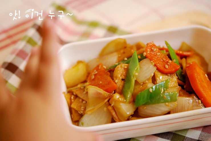4. 야채들이 어느정도 익어갈무렵 어묵을 넣고 두어번 전체적으로 뒤섞어주시고