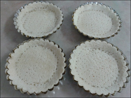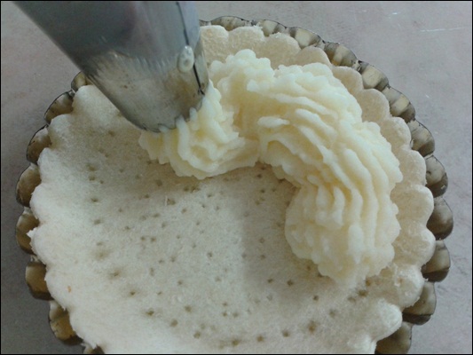 타르트 틀에 넣은 다음 포크로 콕콕 구멍을 많이 내주세요( 부푸는걸 방지해줘요^^)