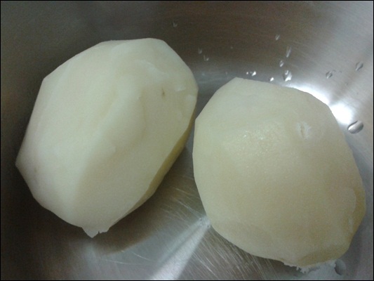 삶은 감자입니다 ( 전 위생봉지에 싸서 전자렌지에 7분정도 익혔어요)