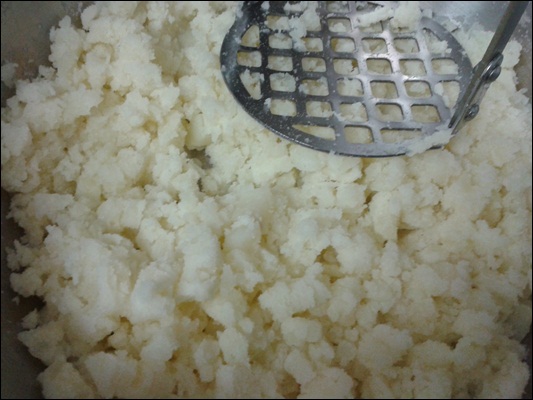 뜨거울때 으깨서 꿀 3과 우유 100을 넣어 섞어주세요