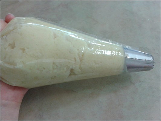 식빵 도우 가장자리를 돌아가면서 짜 주세요