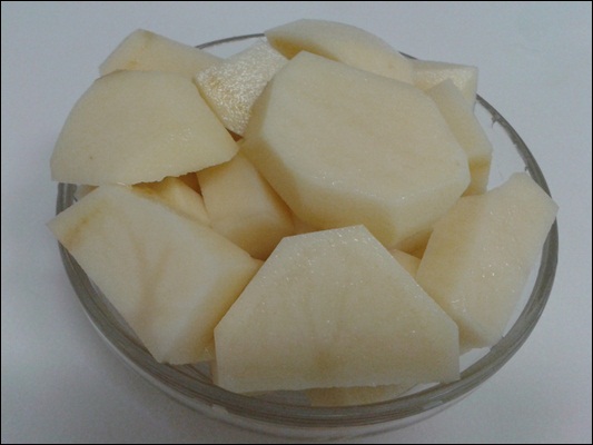 감자를 깎아서 도톰하고 먹기 좋게 썰어주세요