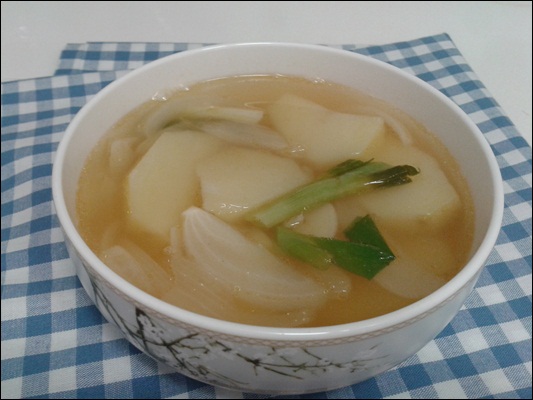 한그릇 개운하게 비우게 되는 양파감잣국이예요^^