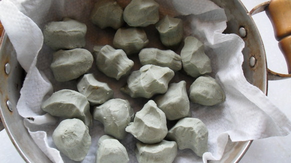 쑥가루에 쌀가루를 뜨거운물에 익반죽해서 30분 정도 반죽을