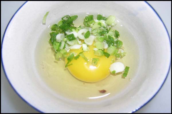 6. 계란을 깨주고 그 위에 쏭쏭썬 쪽파를 올려줍니다.