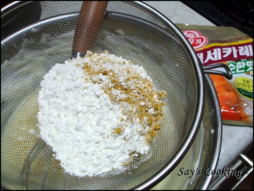 카레와 박력분은 채에 1~2번 정도 내려서 사용해주셔야 고운 입자의 케이크가 나와요.