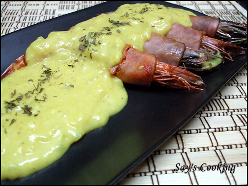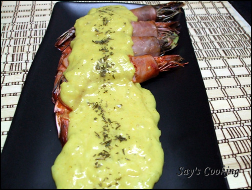새우를 접시에 넣고 크림소스를 뿌려주시면 완성^^