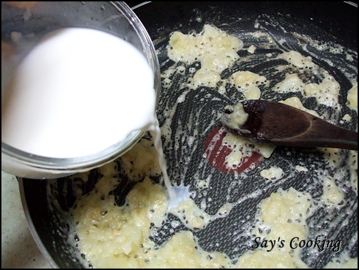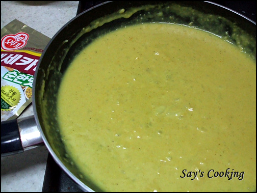 불을 끄신후 우유(반정도)붓고 카레가루를 부워 잘 섞어주세요,