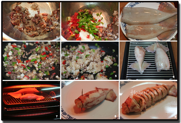 6. 오징어 몸통에 5를 넣고 소가 빠져나오지 않게 이쑤시개를 꽂고