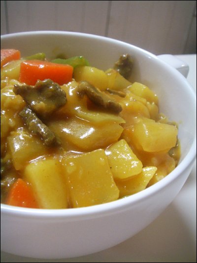 카레가루, 쇠고기, 감자, 당근, 양파, 피망