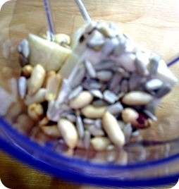 믹서기에 생식용두부1/2모와 바나나1개, 우유180ML, 견과류,