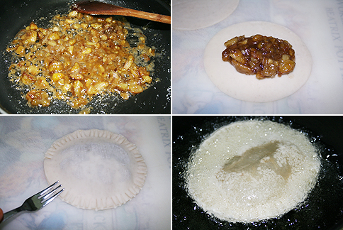 2. 물기없이 졸여지면 만두피 위에 졸인 밤을 올리고 다시 만두피를 덮어주세요.