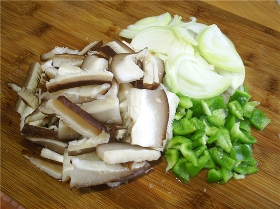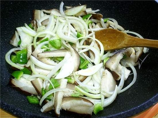 재료 : 표고버섯5개, 양파1/2개, 피망1개, 소금, 후추, 카놀라유