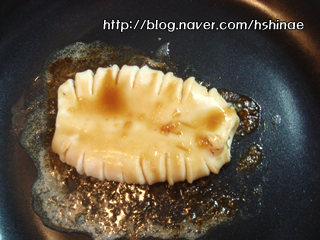 1. 우선 오징어는 껍질을 깨끗하게 벗겨 몸통 양쪽으로 1cm간격의 가위집을 내줍니다.2. 분량대로 소스를 준비합니다.3. 먼저 달군 팬에 버터를 넣고 오징어를 굽다가 앞뒤면으로 양념 소스를 살짝 발라주면서 한번더 구워줍니다.4. 오징어가 다 익었으면 접시에 먼저 담아놓구 오징어를 굽던 팬에 소스를 붓고 끓여줍니다.이때 양파도 같이 살짝 볶아줍니다.5. 소스가 다 끓으면 오징어주변에 소스를 뿌려주고 볶은 양파는 오징어몸통위에 살포시 얹어줍니다.어슷썬 파와 통깨를 뿌려서 장식합니다.