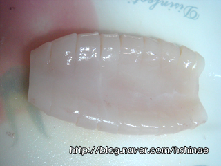 오징어 1마리, 버터 1작은술, 간장 2큰술, 굴소스 1큰술, 설탕 1큰술, 마늘 1/2작은술, 생강즙 1/2작은술, 청주 1큰술, 물 1큰술, 양파, 어슷썬 파, 통깨 약간