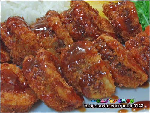 6. 그릇에 담고 케첩이나 돈가스소스를 곁들인다.