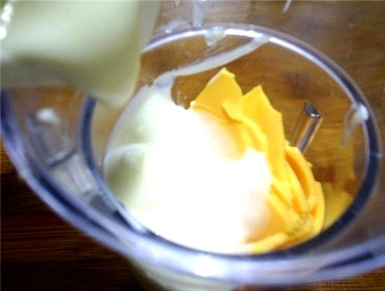 플레인요거트100g자리 2개와 슬라이스치즈2장을 넣어 곱게 갈아줍니다.
