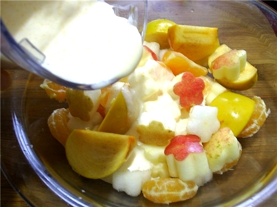 고소함의 극치에 다다른 치즈요거트드레싱뿌린 과일샐러드 완성입니다.