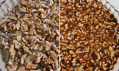 그런 다음 호두와 해바라기씨 넣고 충전물 부어