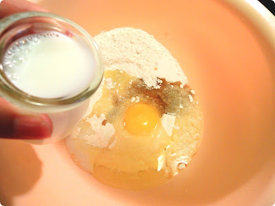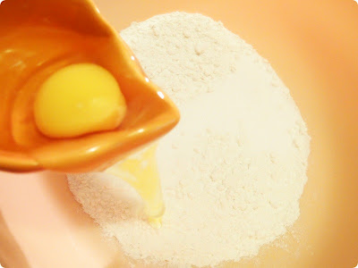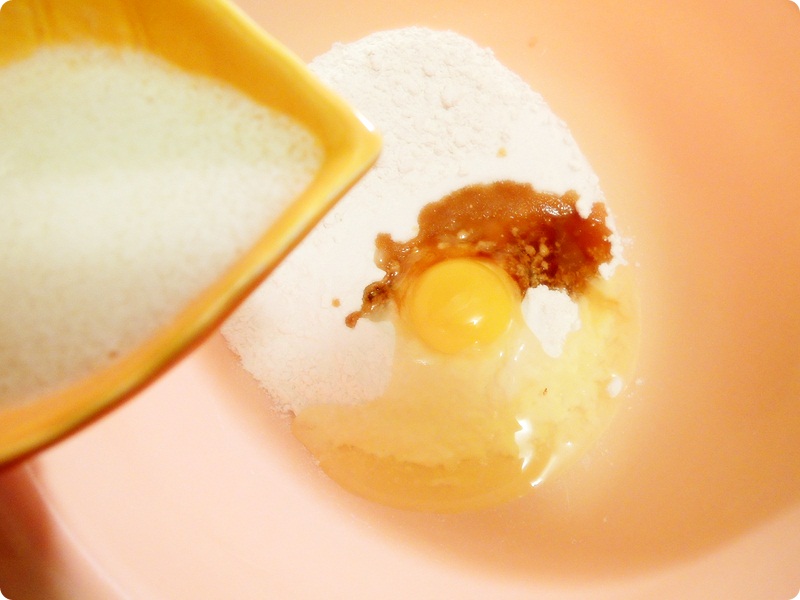 밀가루 한컵에 설탕 1/2컵 을 섞어요