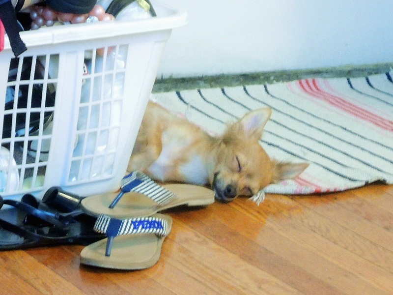 제가 빵을 구울동안 제 강아지는 다리를 쩍! 벌리고 휴식을 취하고 있어요~
