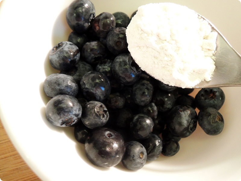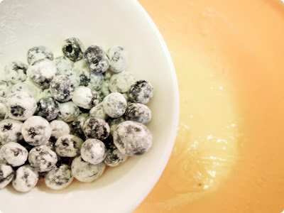 I coated my blueberries with some flour to prevent sinking when they are in the batter.
