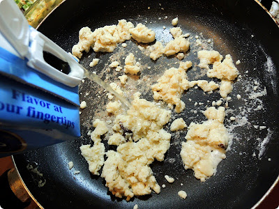 Now, let's make the sauce. On a frying pan, add the butter and the flour