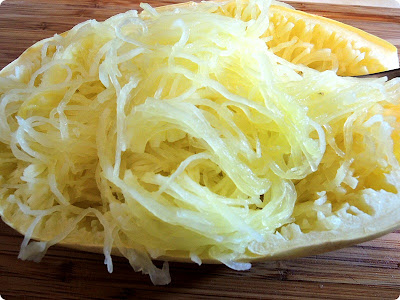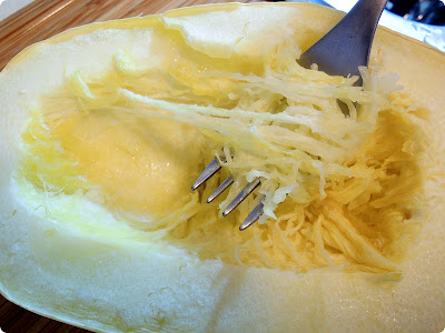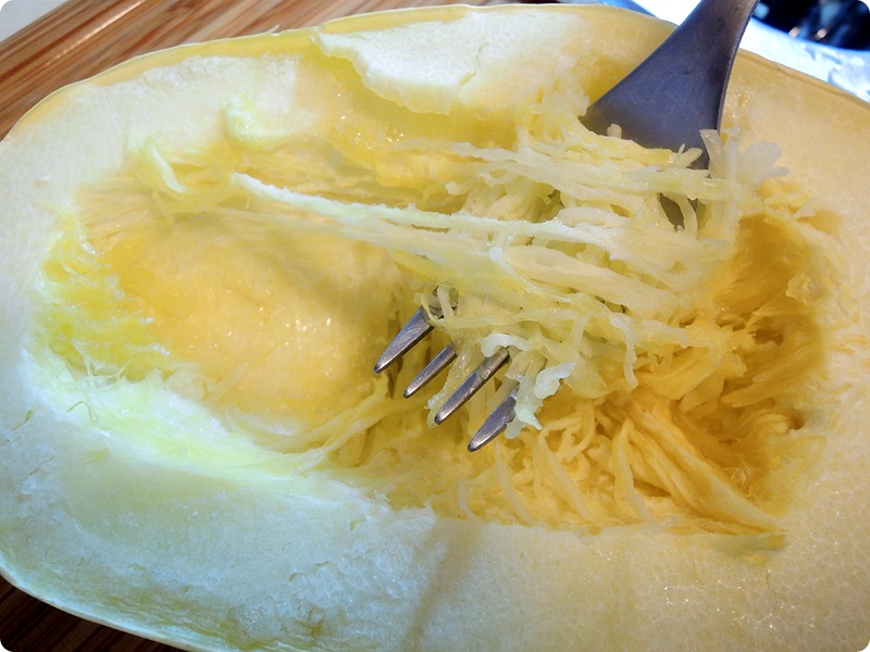 I microwaved the squash about 15min and scraped it with a fork