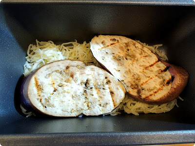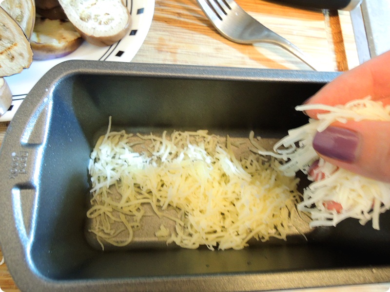 재료: 가지, 갈은돼지고기, 다진양파, 국수호박, 다진 파, 모짜렐라 치즈, 소스: 다진마늘, 캔토마토, 화이트와인